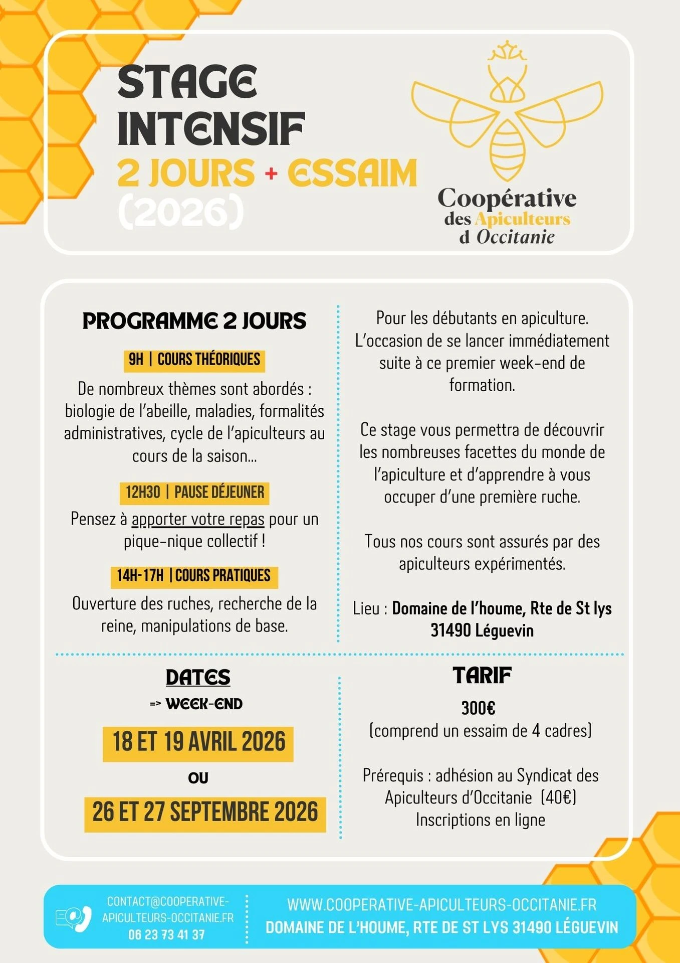 Stage intensif 2j avec essaim 26 & 27 septembre 2026